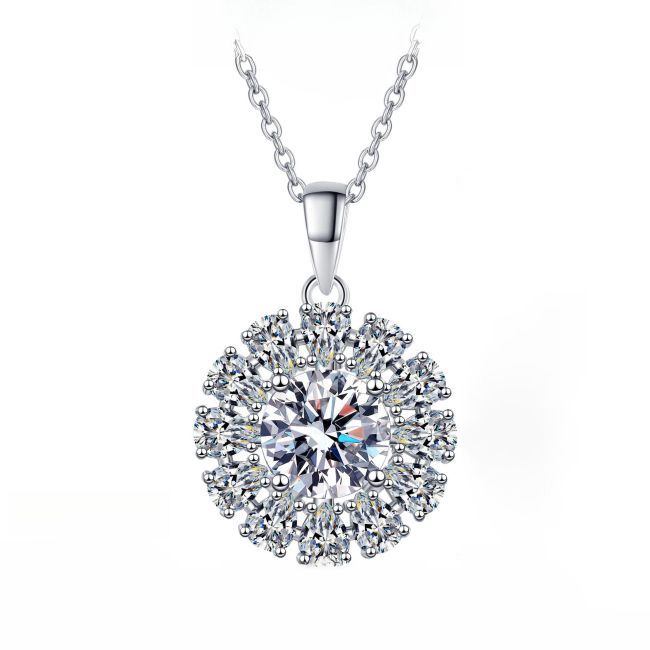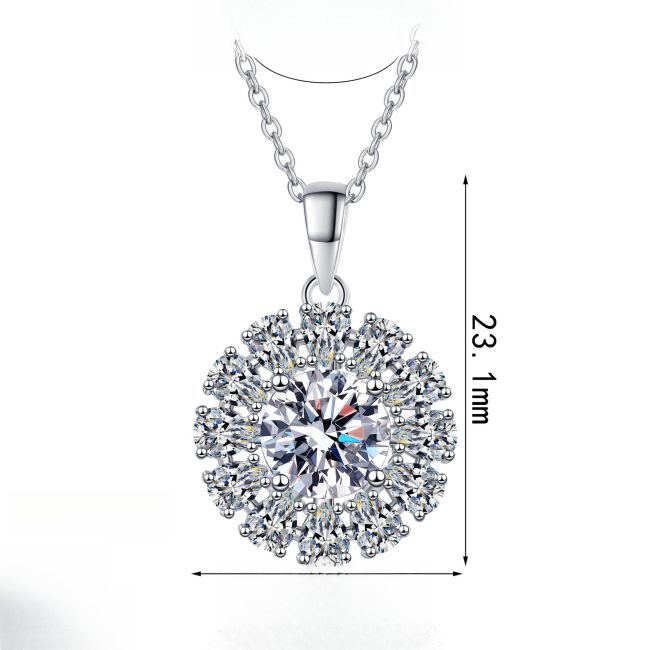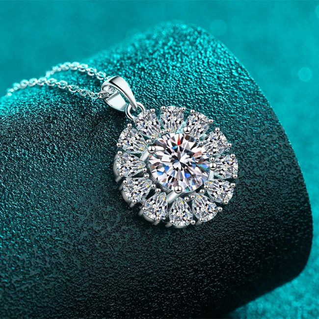 Sunflower Pendant Necklace with 2-Carat Moissanite and 8mm Zirconia Accents in Sterling Silver