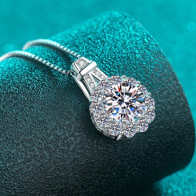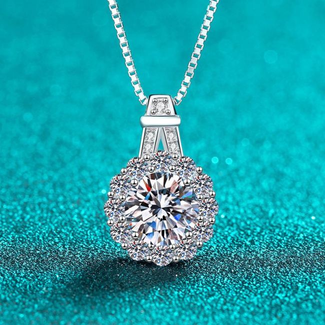 Sunflower Pendant Necklace with 2-Carat Moissanite and 8mm Zirconia Accents in Sterling Silver
