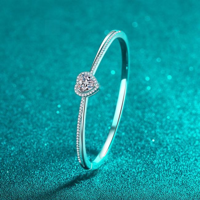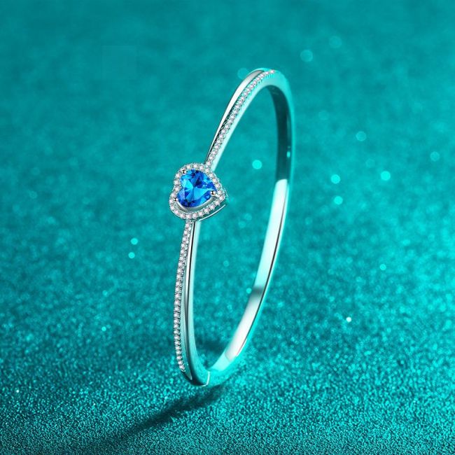 Sweet Heart Bracelet with 1.45ct Blue Moissanite and 925 Sterling Silver Plated PT950 Design