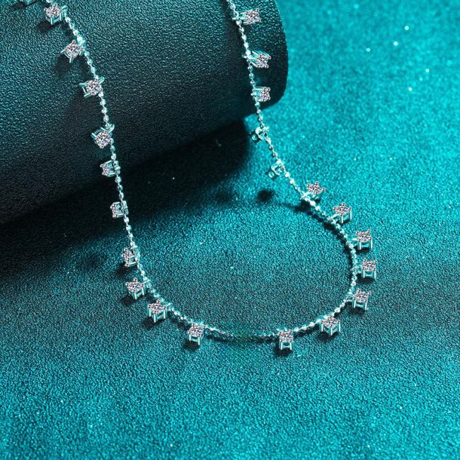Women's 925 Sterling Silver Moissanite Ginkgo Leaf Layered Necklace with Platinum Plating