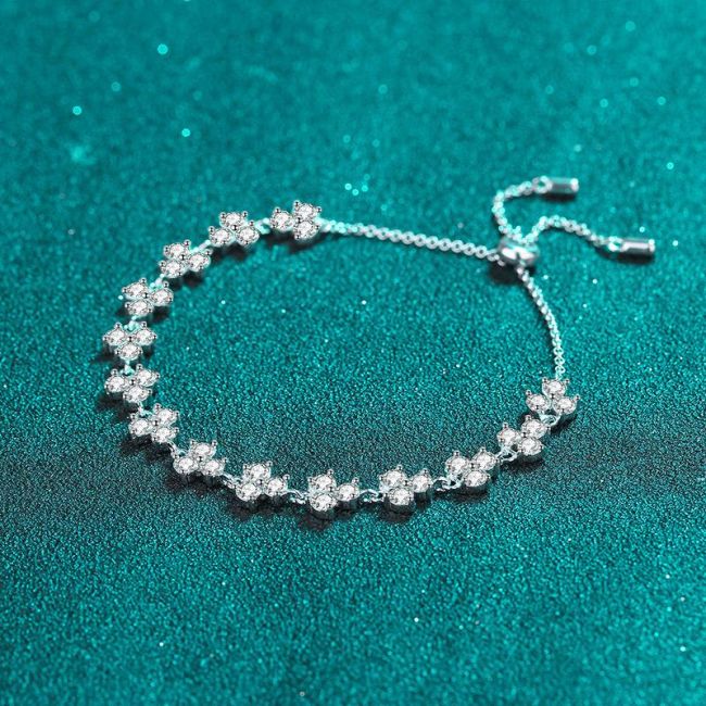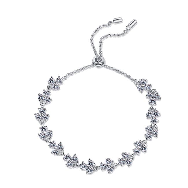 Women's Adjustable Four-Leaf Clover Bracelet with 4.2 Carat Moissanite in Platinum-Plated 925 Sterling Silver
