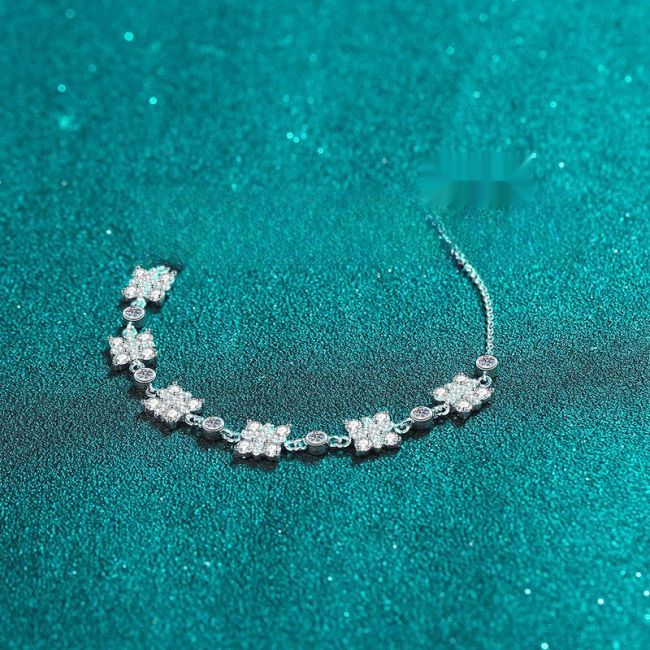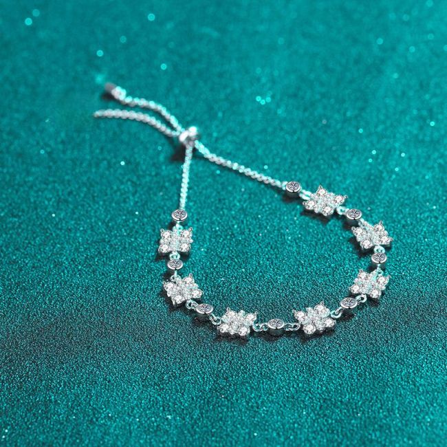 Moissanite Cluster Bracelet with Platinum Plated Sterling Silver Clasp in Geometric Design