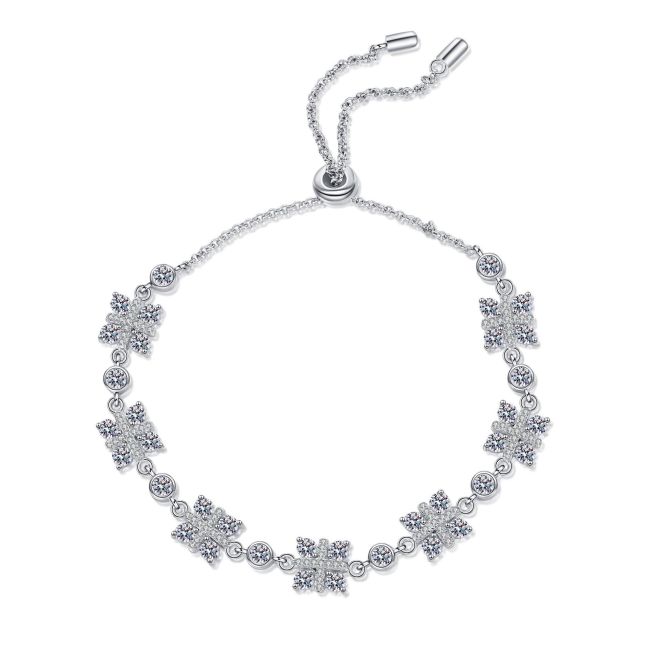 Women's Adjustable Four-Leaf Clover Bracelet with 4.2 Carat Moissanite in Platinum-Plated 925 Sterling Silver